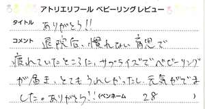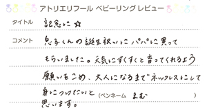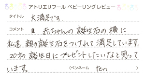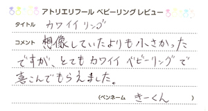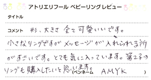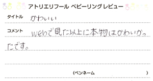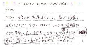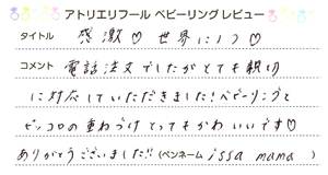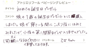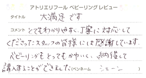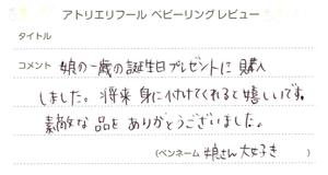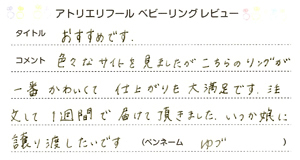 このページでは、アローデベビーリングをご購入くださったお客様からの声を掲載しております。
