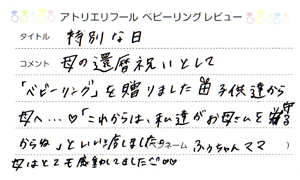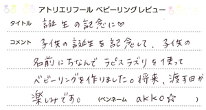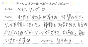 このページでは、アローデベビーリングをご購入くださったお客様からの声を掲載しております。